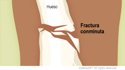 Una fractura conminuta es un tipo de fractura de un hueso. El hueso se fractura en más de dos partes.